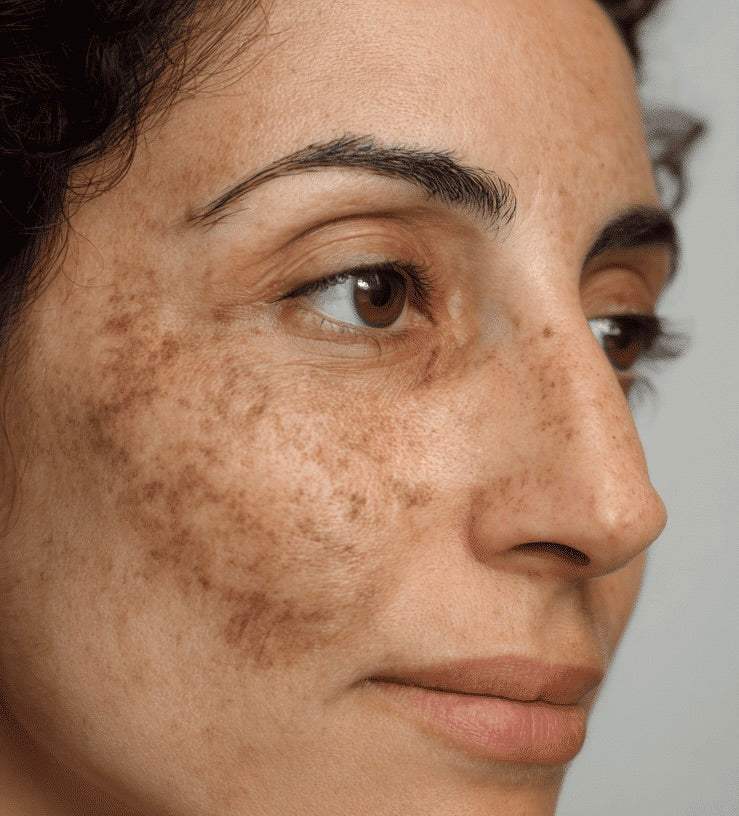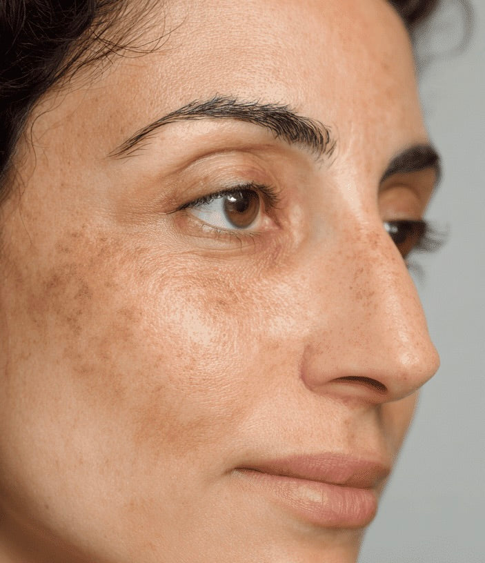 Anni di esposizione al sole, cura della pelle inadeguata e cambiamenti ormonali portano a una sovrapproduzione di melanina, causando iperpigmentazione, macchie scure e tono della pelle non uniforme.